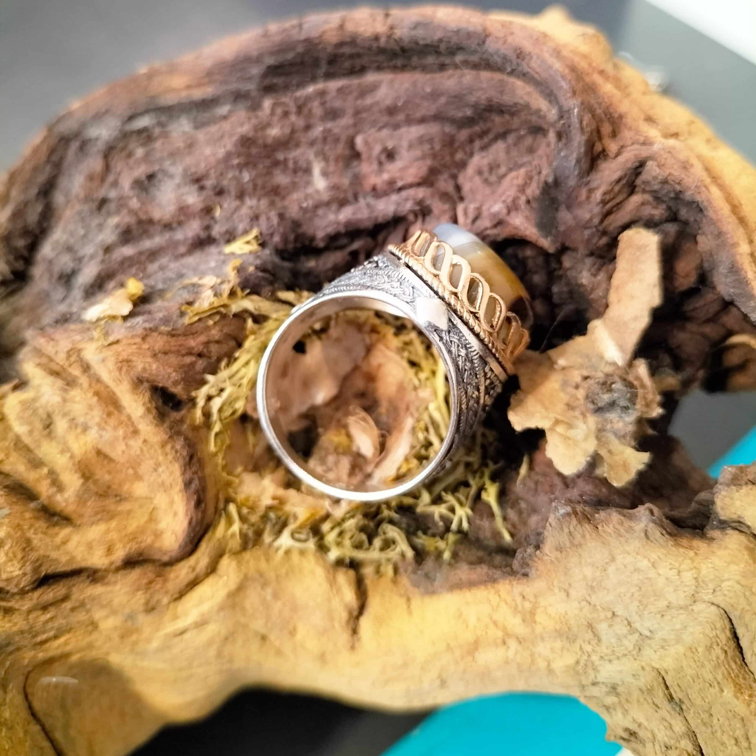 Bague Homme Agate du Botswana taille 60 Argent