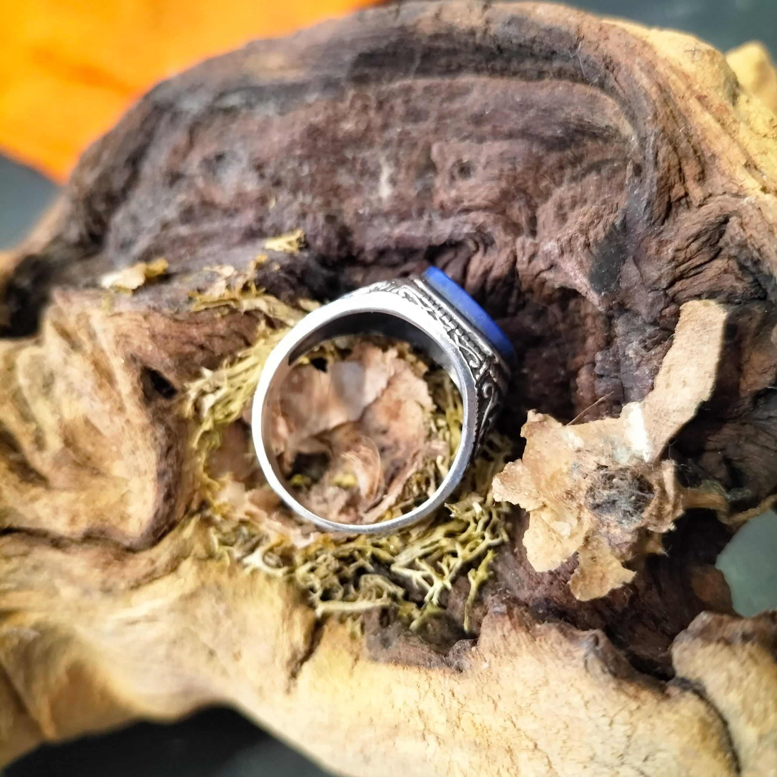 Photo contractuelle, la Bague Homme Lapis Lazuli taille 61 Argent en photo est celle que vous recevrez .
