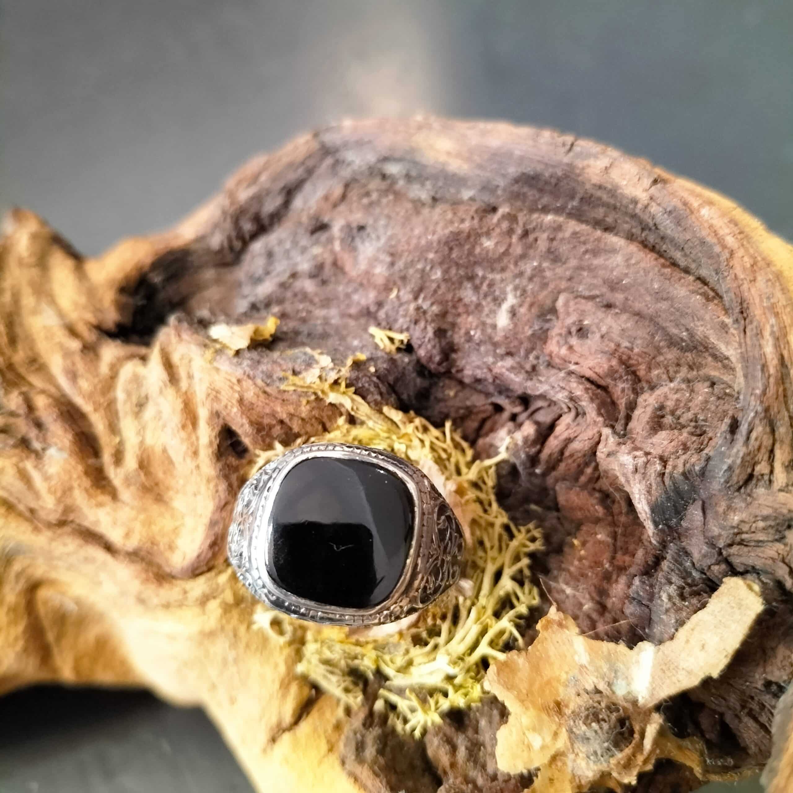 Cette chevalière argent pour hommes est sertie d’une pierre ovale noire d’onyx qui a un effet protecteur sur celui qui la porte. Elle éloigne les mauvaises énergies et apporte de la stabilité en apaisant vos angoisses.