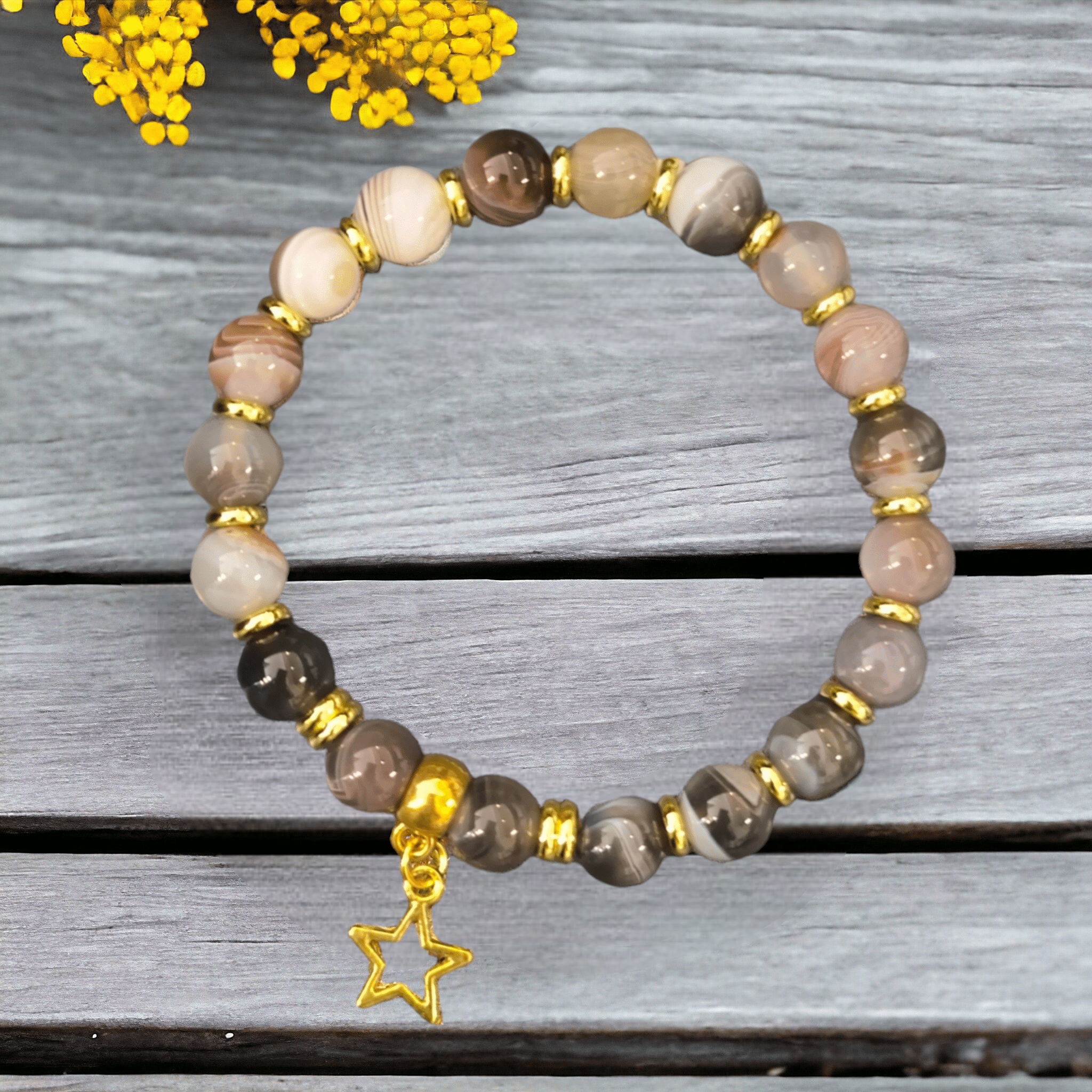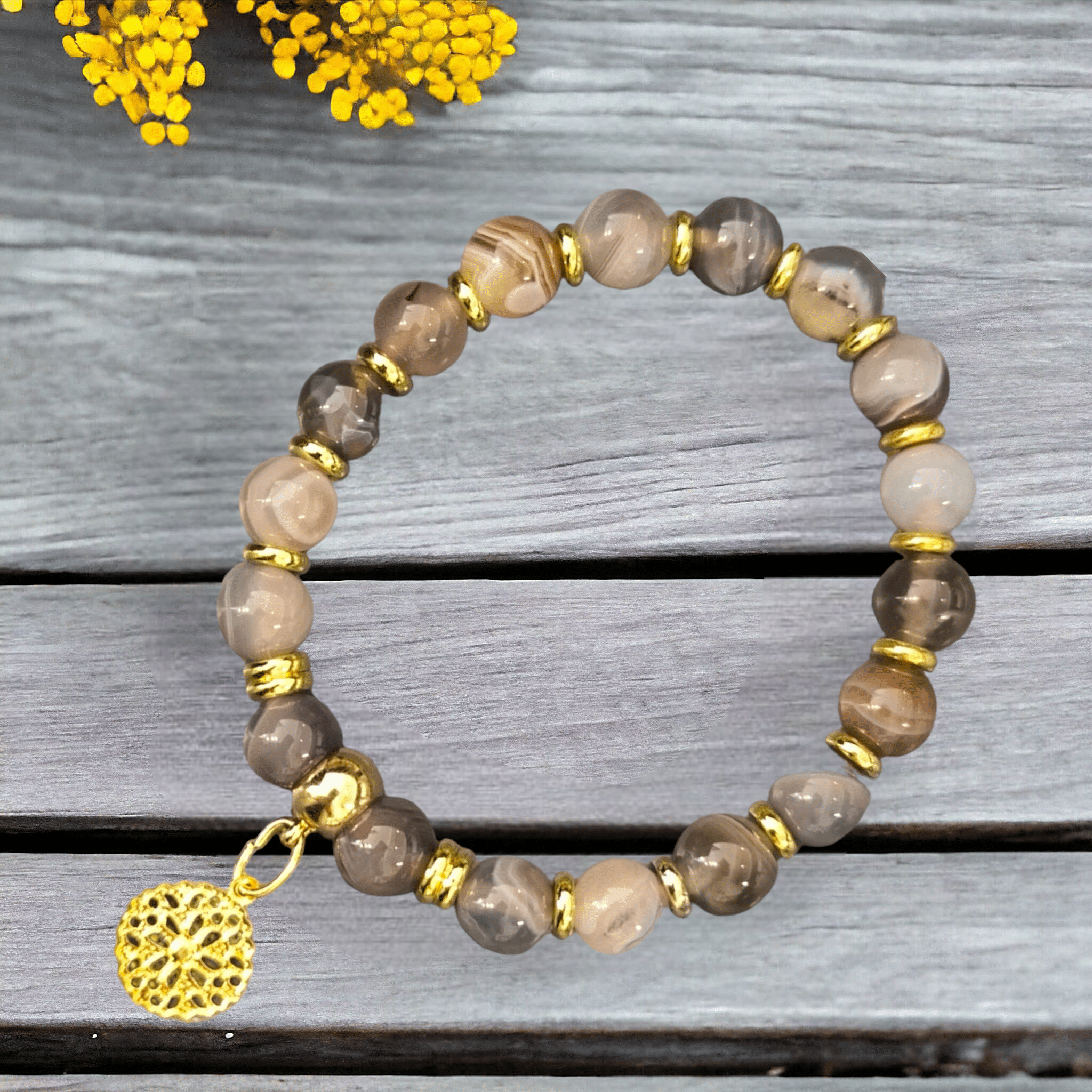 Bracelet Agate du Botswana 8mm + apprêt rond
