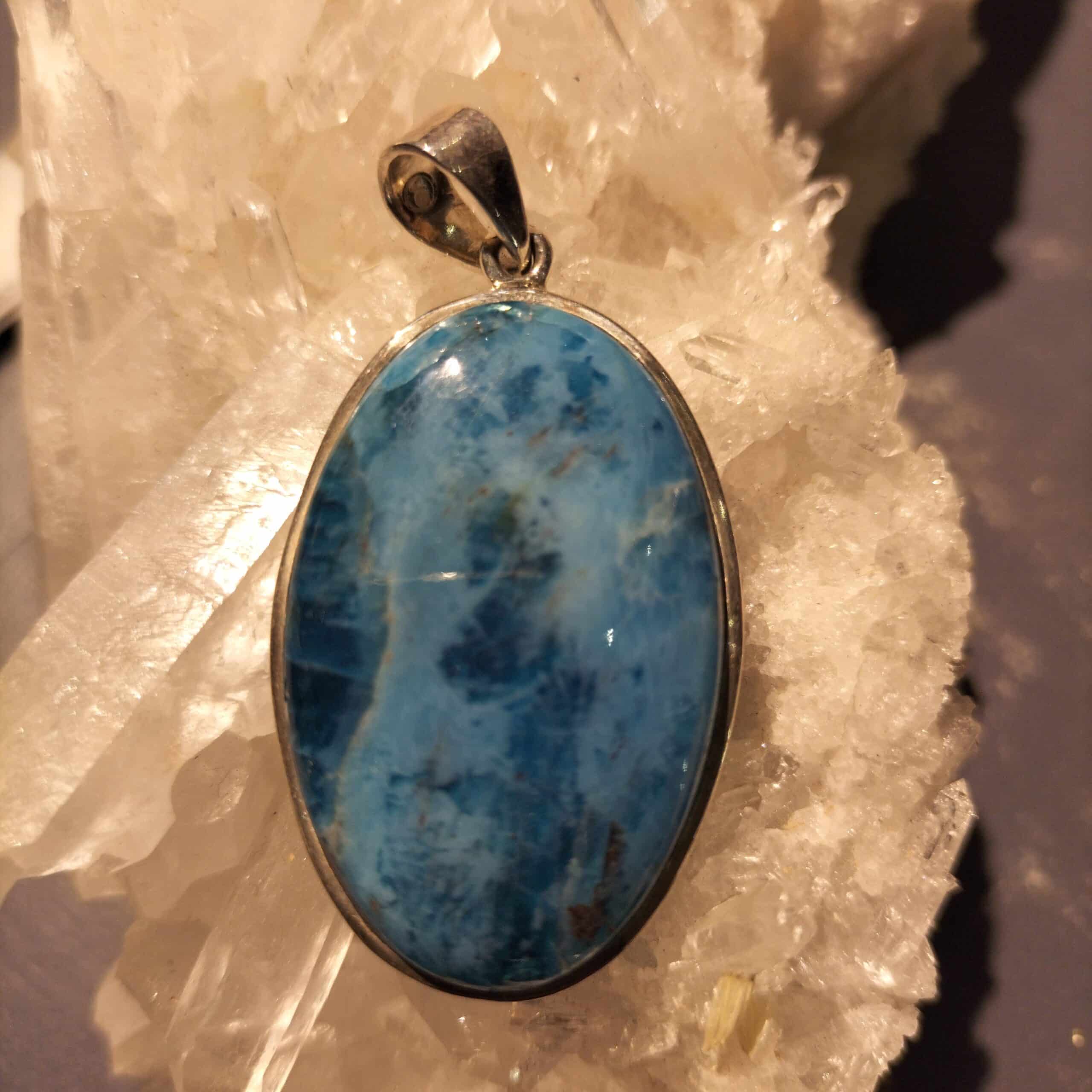 Pendentif Apatite Bleu Monture Argent Ref 5346