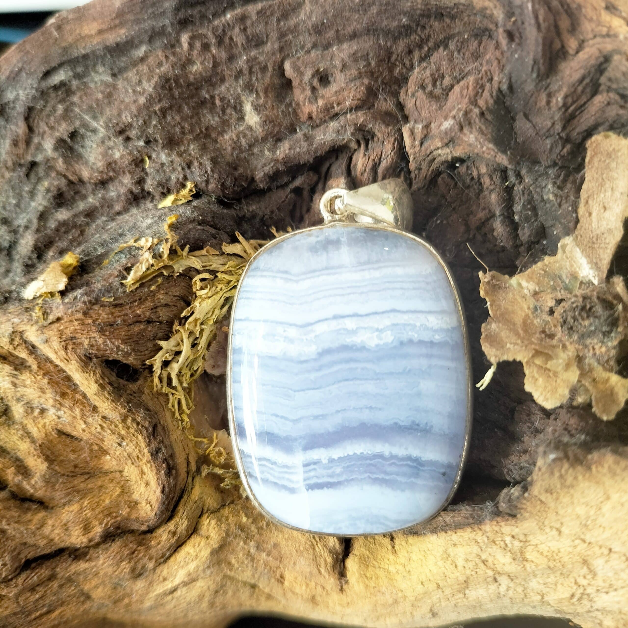 Pendentif Calcédoine Bleu Monture Argent réf 4680
