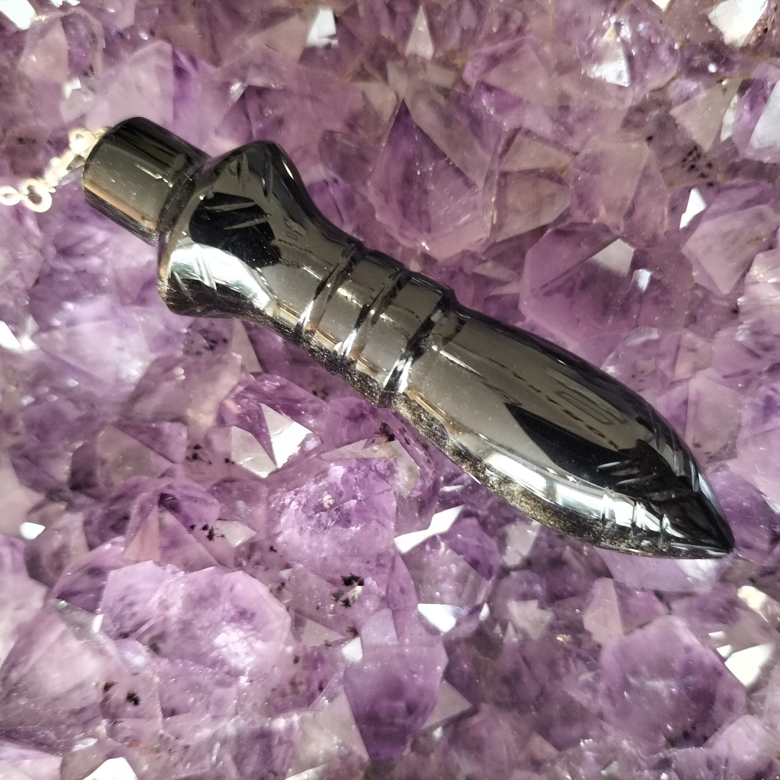 Le Pendule Egyptien Obsidienne Œil Céleste possède de haute qualité vibratoire. Utilisé pour tous travaux. Rééquilibre les énergies, Très précis, peut être utilisé en Reiki,