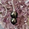 Pendule Egyptien Obsidienne Œil Céleste. Chaîne de couleur argenté d’environ 170mm.