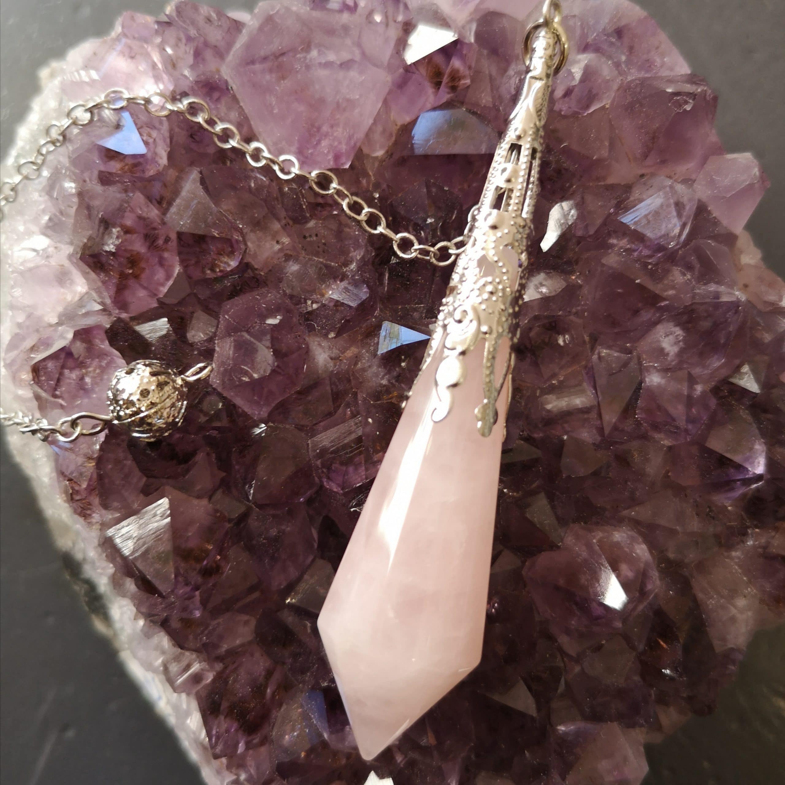 Le Pendule Quartz rose possède de haute qualité vibratoire. Utilisé pour tous travaux. Rééquilibre les énergies, Très précis, peut être utilisé en Reiki,